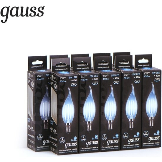 Светодиодная лампа Gauss LED Filament Candle tailed E14 5W 4100K (упаковка 10 шт) информация: