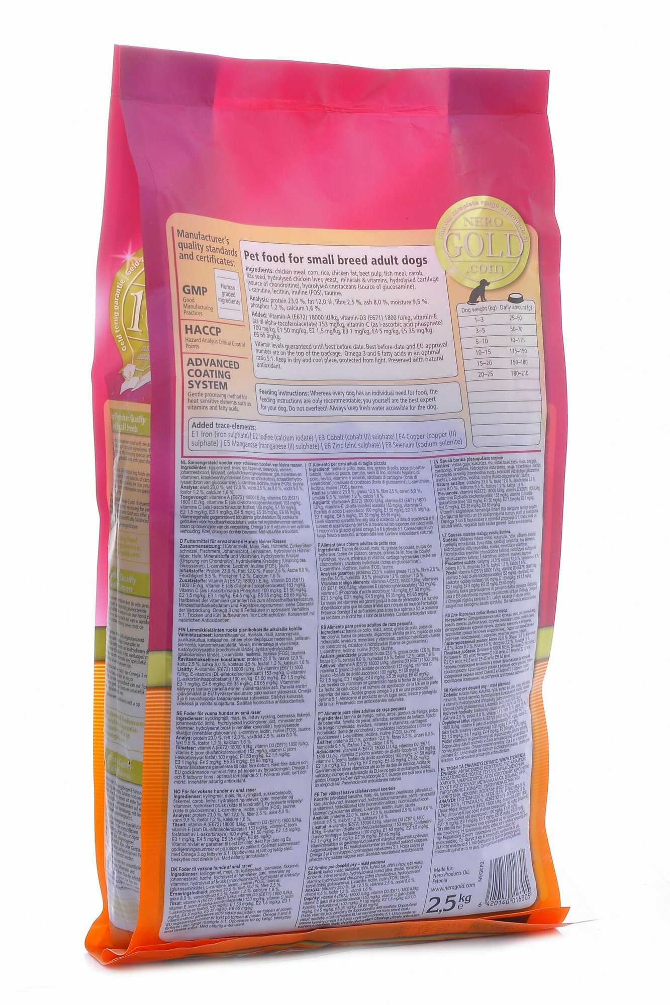 Корм Nero Gold для взрослых собак малых пород, 2,5 кг