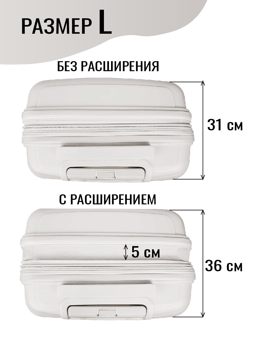 Чемодан на колесах дорожный большой семейный багаж для путешествий женский l Тевин размер Л 73 см 105 л легкий и прочный полипропилен Белая волна 10 550 ₽