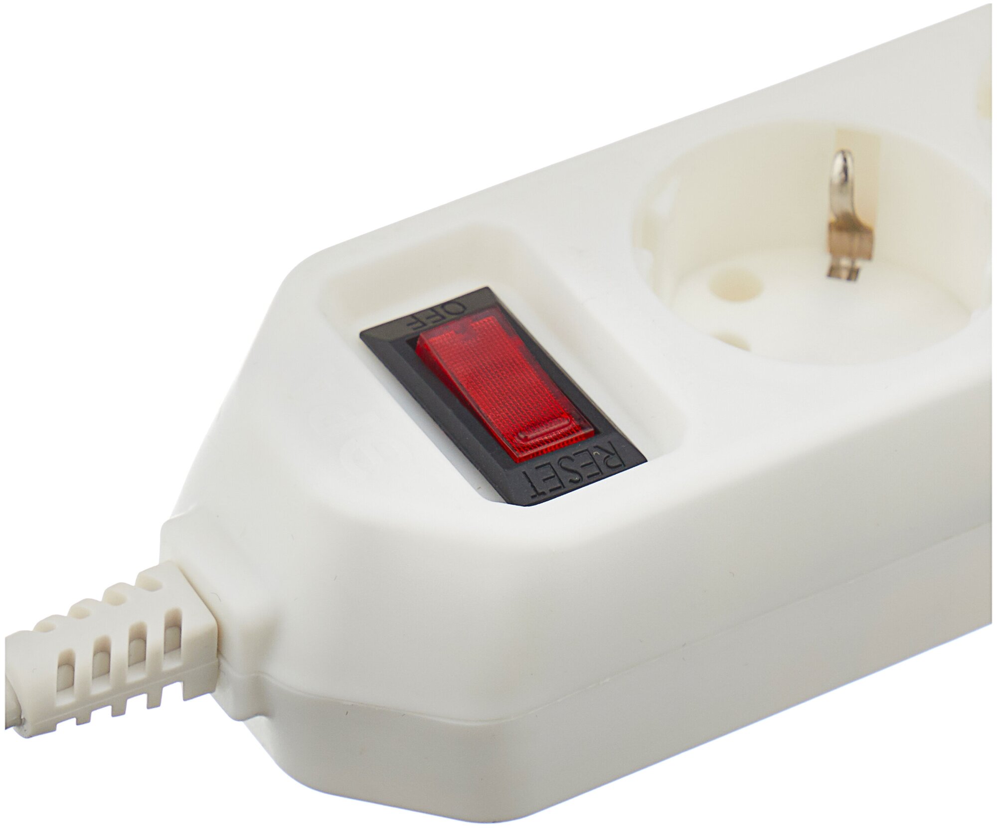 Сетевой фильтр ЭРА с защитой (термо) с заземлением с выключателем 4 розетки 1,5м, 10А, белый