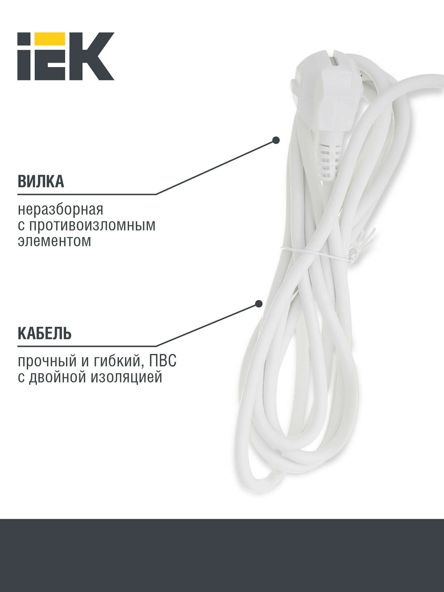 Удлинитель IEK WYP10-16-02-05-Z-N, 2 розетки, с/з, 16А / 3500 Вт