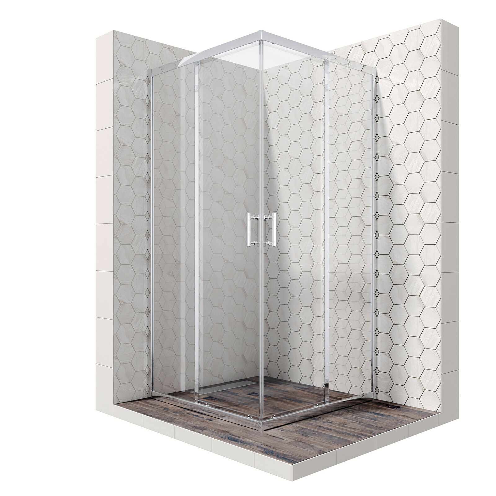 10 цен на Душевой уголок 90х90 с трапом и раздвижными дверями Ambassador Kingston 14011102-ST5: душевое ограждение из стекла 6 мм, профиль хром