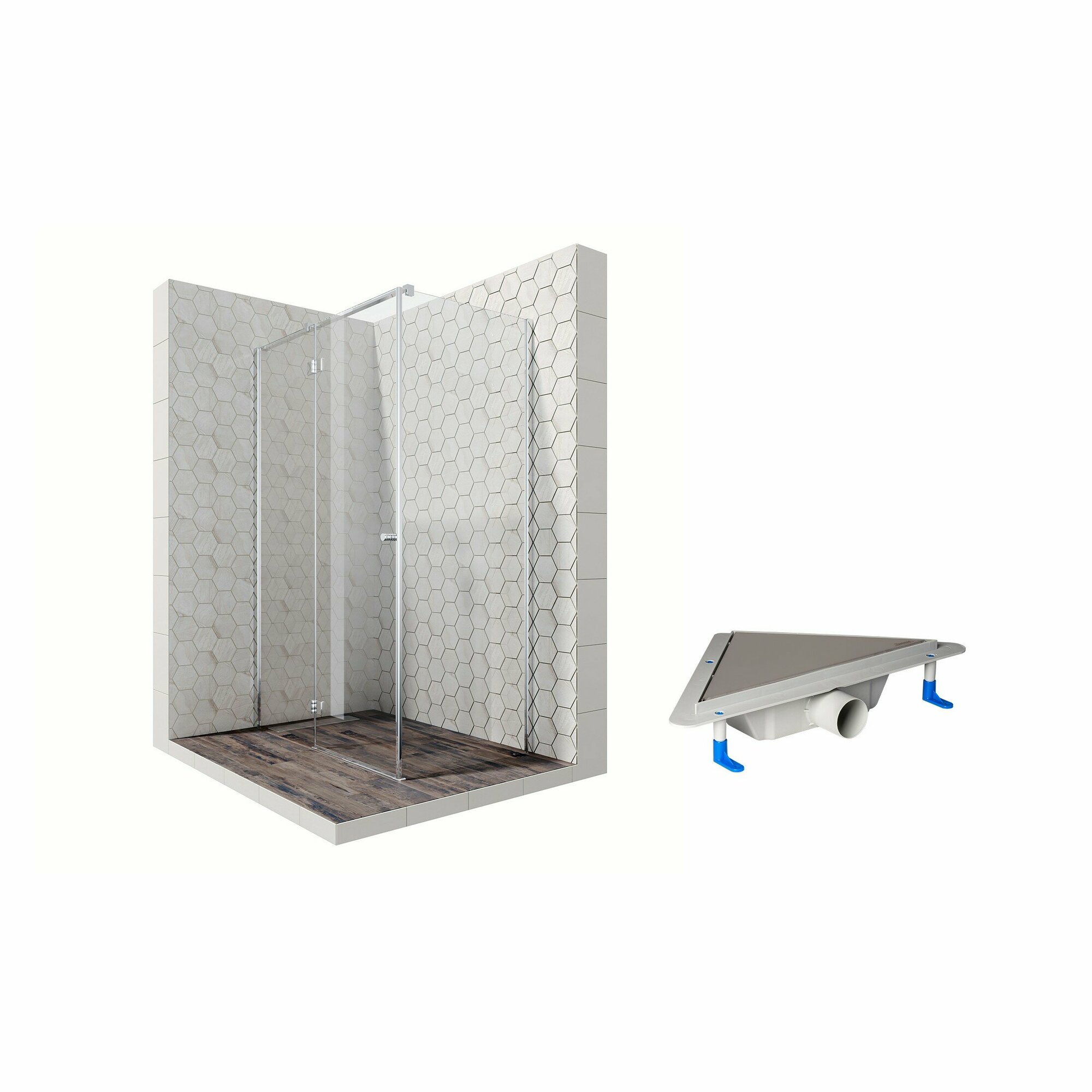 Комплект душевого ограждения (перегородка) со свободным входом с линейным трапом Ambassador Walk-in 15031104-ST4, с EasyClean, 120 см