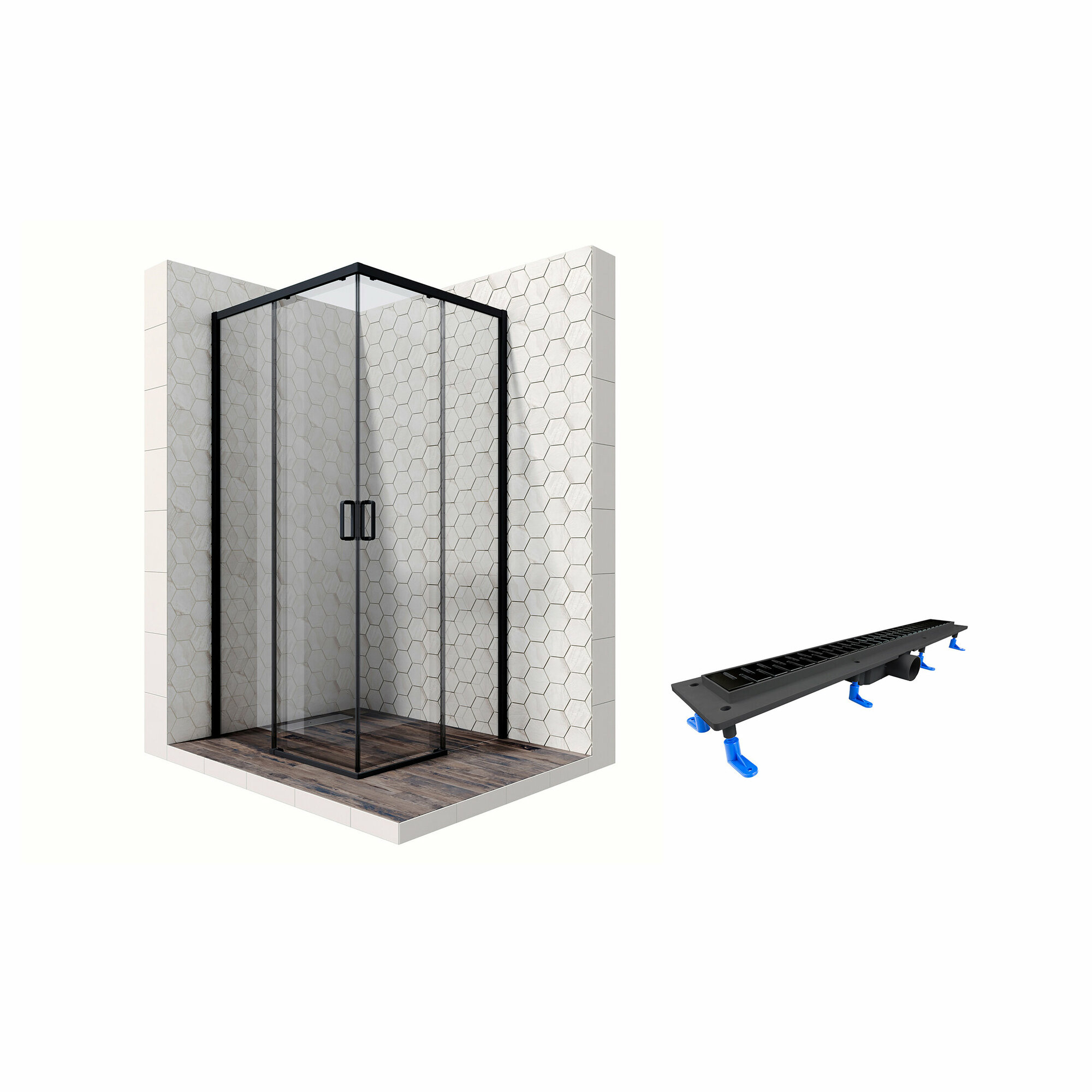Комплект квадратного душевого ограждения с линейным трапом Ambassador Queen Black 11011204-ST8, с EasyClean, 100 х 100 см