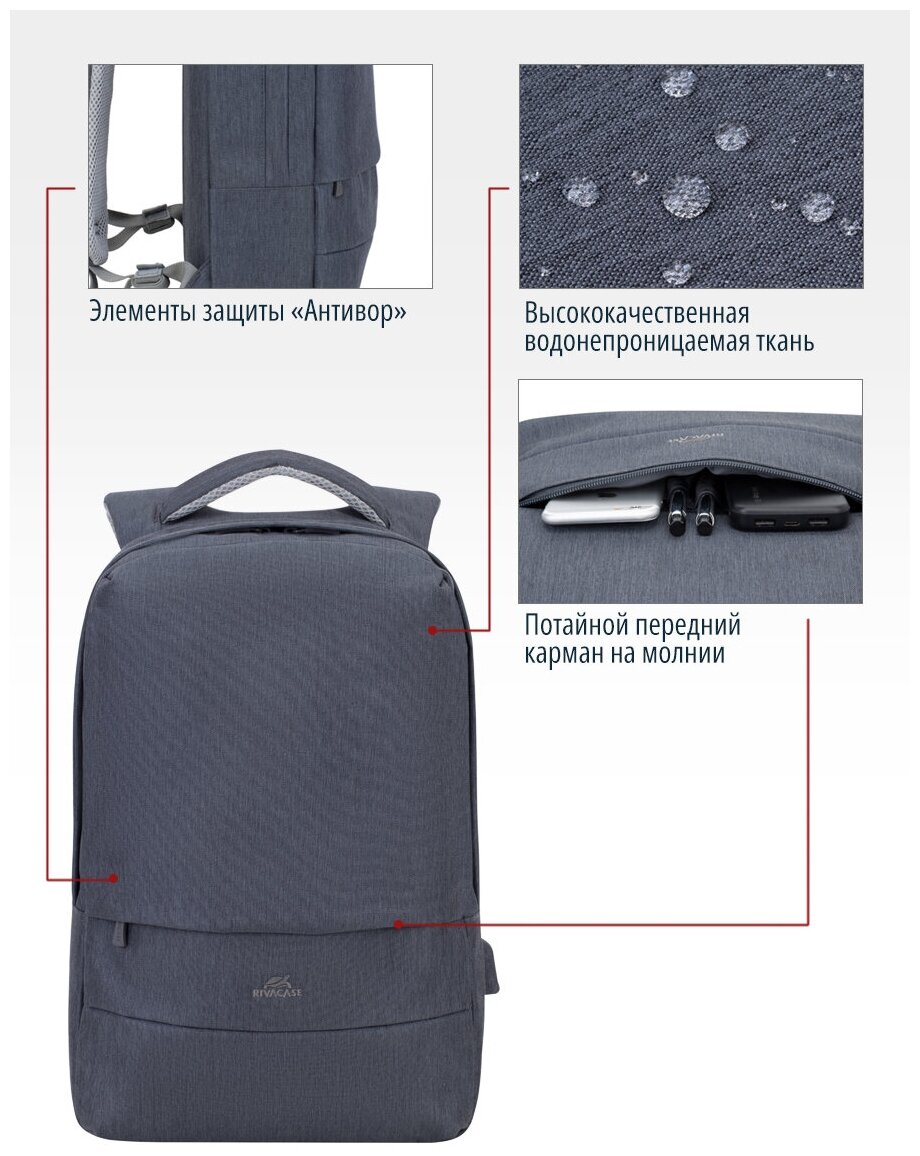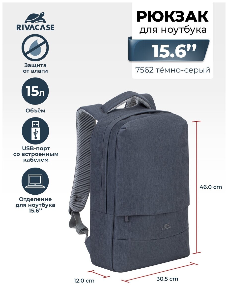 Рюкзак для ноутбука RivaCase 7562 (15.6", т-серый) информация: