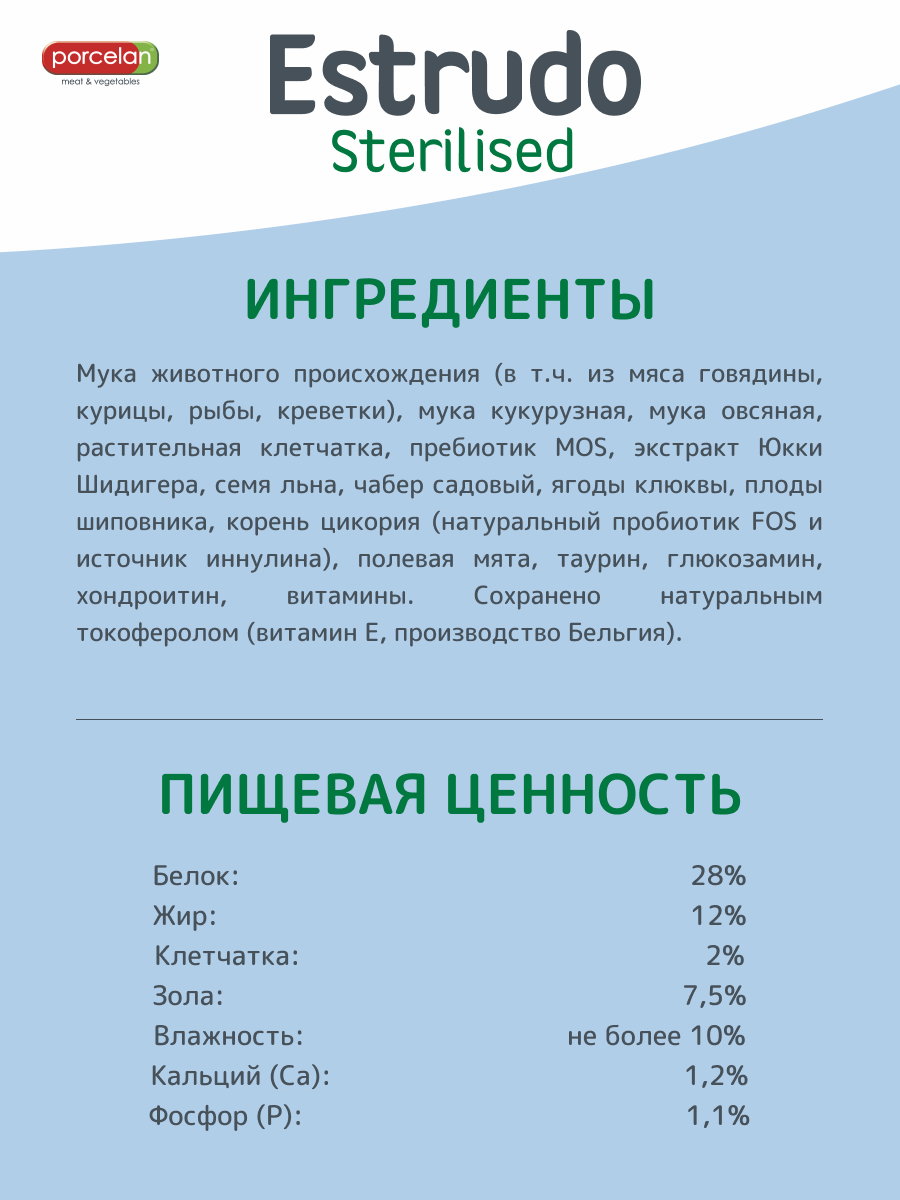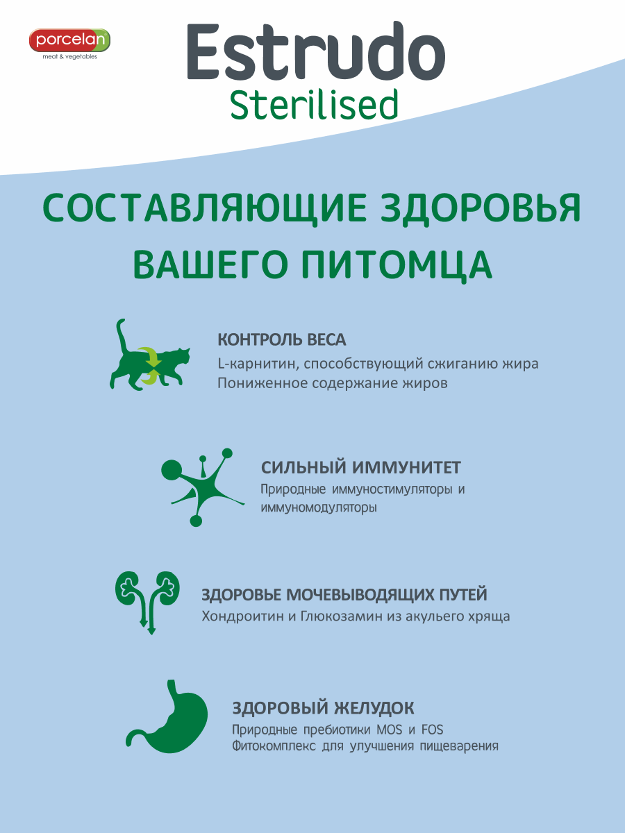 Сухой корм Estrudo Sterilised Cat (Креветка) для стерилизованных кошек 400 г информация: