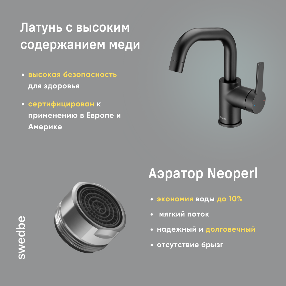 Отзывы на Смеситель для раковины Swedbe 1011B Diana высокий, однорычажный, черный матовый 1011B, EAN 7350078204699
