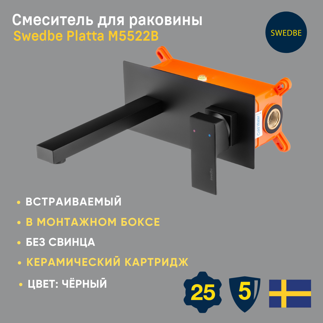 Смеситель для раковины Swedbe Platta встраиваемый 5501B информация: