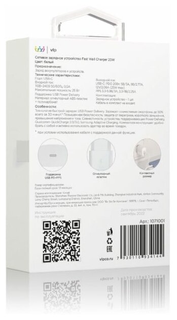 10 цен на Зарядное устройство "VLP" 25Вт USB-C, PD, PPS, белый