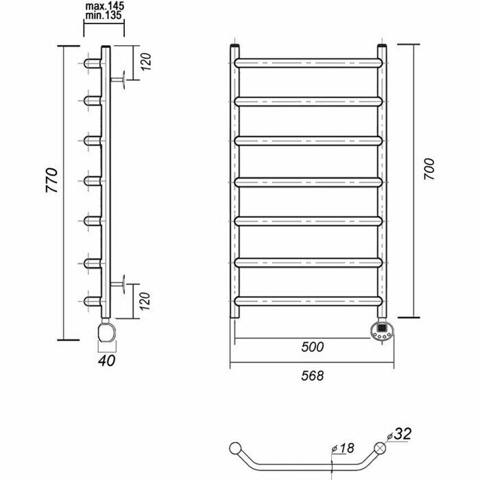 Полотенцесушитель электрический Domoterm Лаура П7 500х700 ER справа информация: