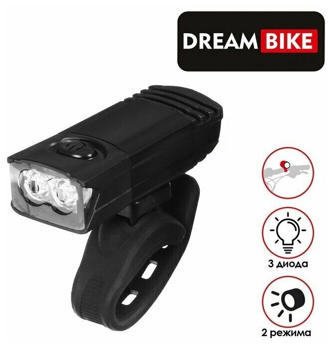 Фонарь велосипедный Dream Bike JY566, передний, 3 диода, 2 режима