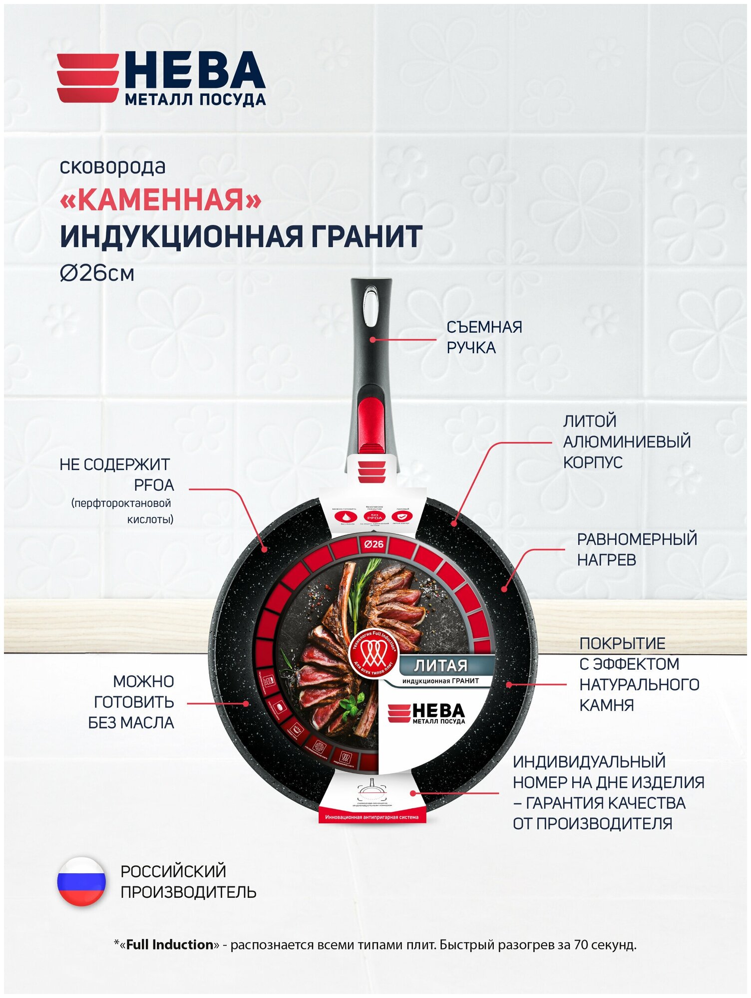 Сковорода Нева Металл Посуда НМП Индукция Гранит со съемной ручкой 26 см L18026i 3 265 ₽