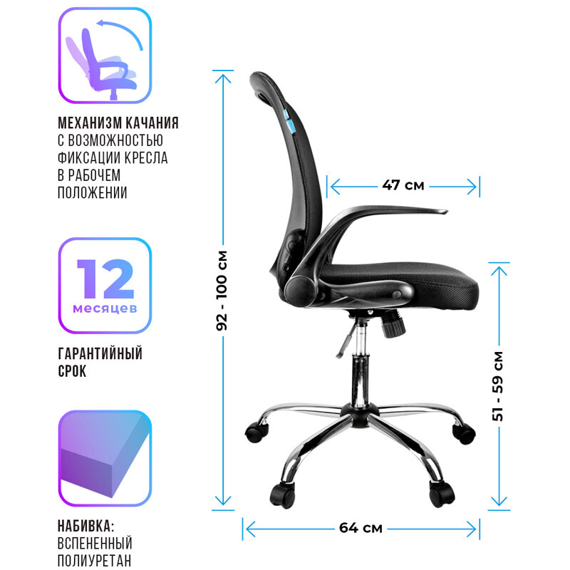 | Функциональные особенности | механизм качания, спинка из сетки, фиксация механизма качания |