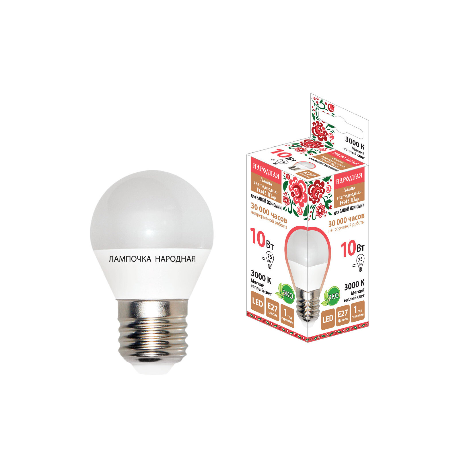Лампа светодиодная FG45-10 Вт-230 В-3000 К–E27 Народная