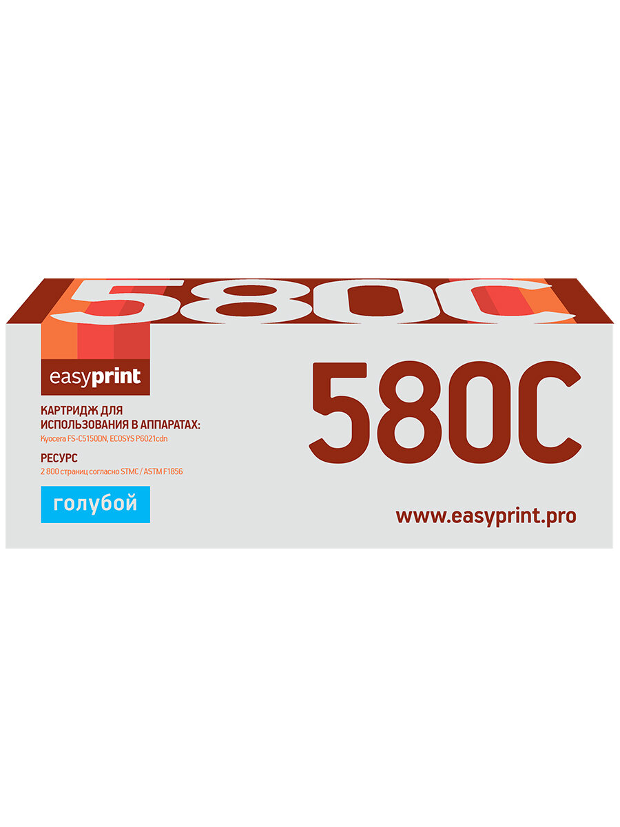 Картридж EasyPrint LK-580C, голубой, 2800 страниц, совместимый для Kyocera FS-C5150DN/ECOSYS P6021