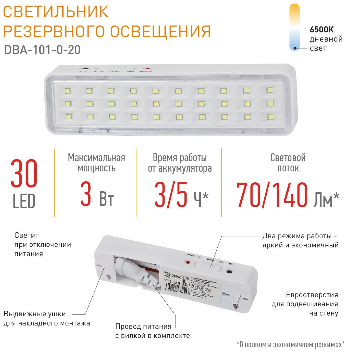 Отзывы на Светильник светодиодный аварийный непостоянный DBA-101-0-20 30LED 5ч IP20 (40/3360) Б0044394 ЭРА