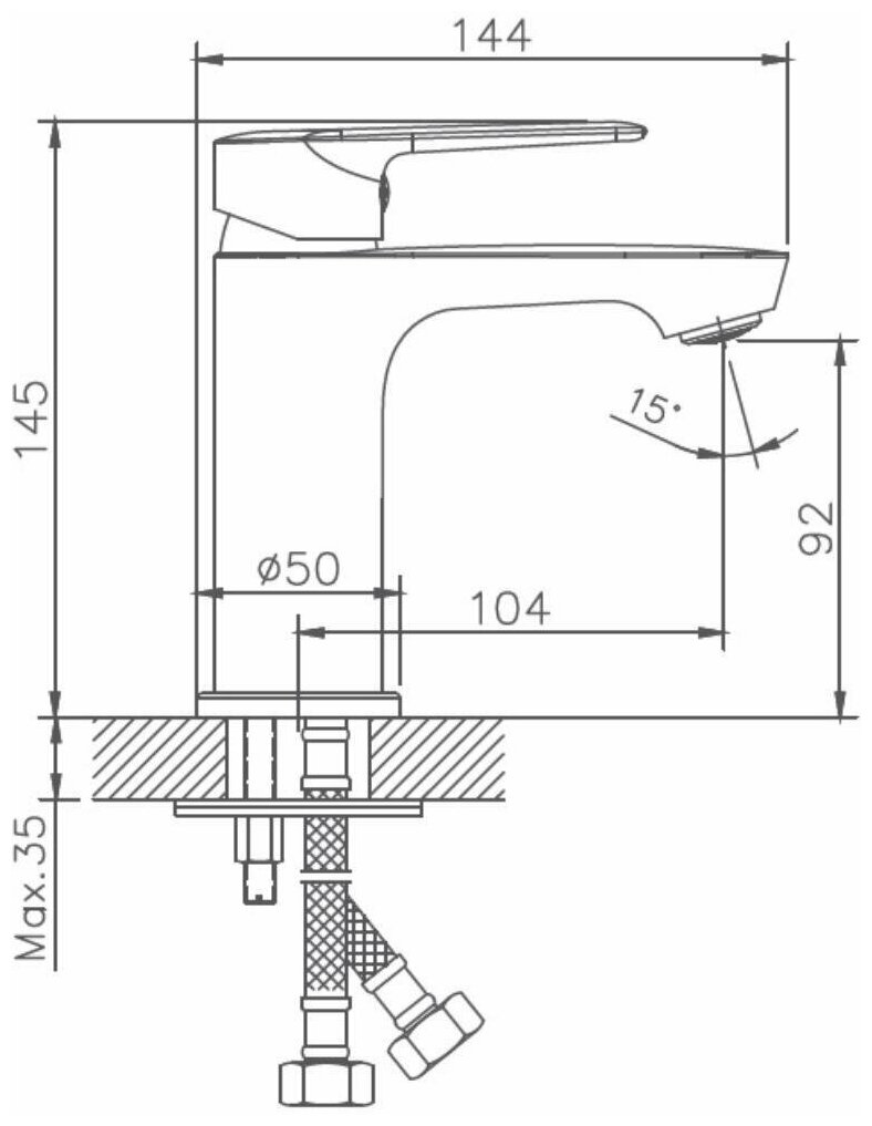 | Комплектация | Смеситель, гибкая подводка 2шт., присоединительная группа для горизонтального крепления |