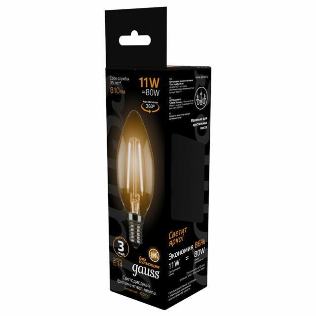 Лампа GAUSS Filament Свеча 11Вт Е14 LED 810Лм 2700К свеча информация: