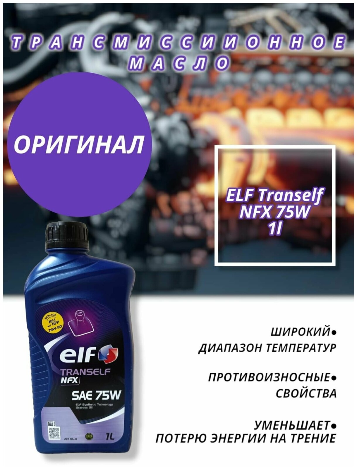 Масло трансмиссионное ELF TRANSELF NFX 75w (1л) EU информация: