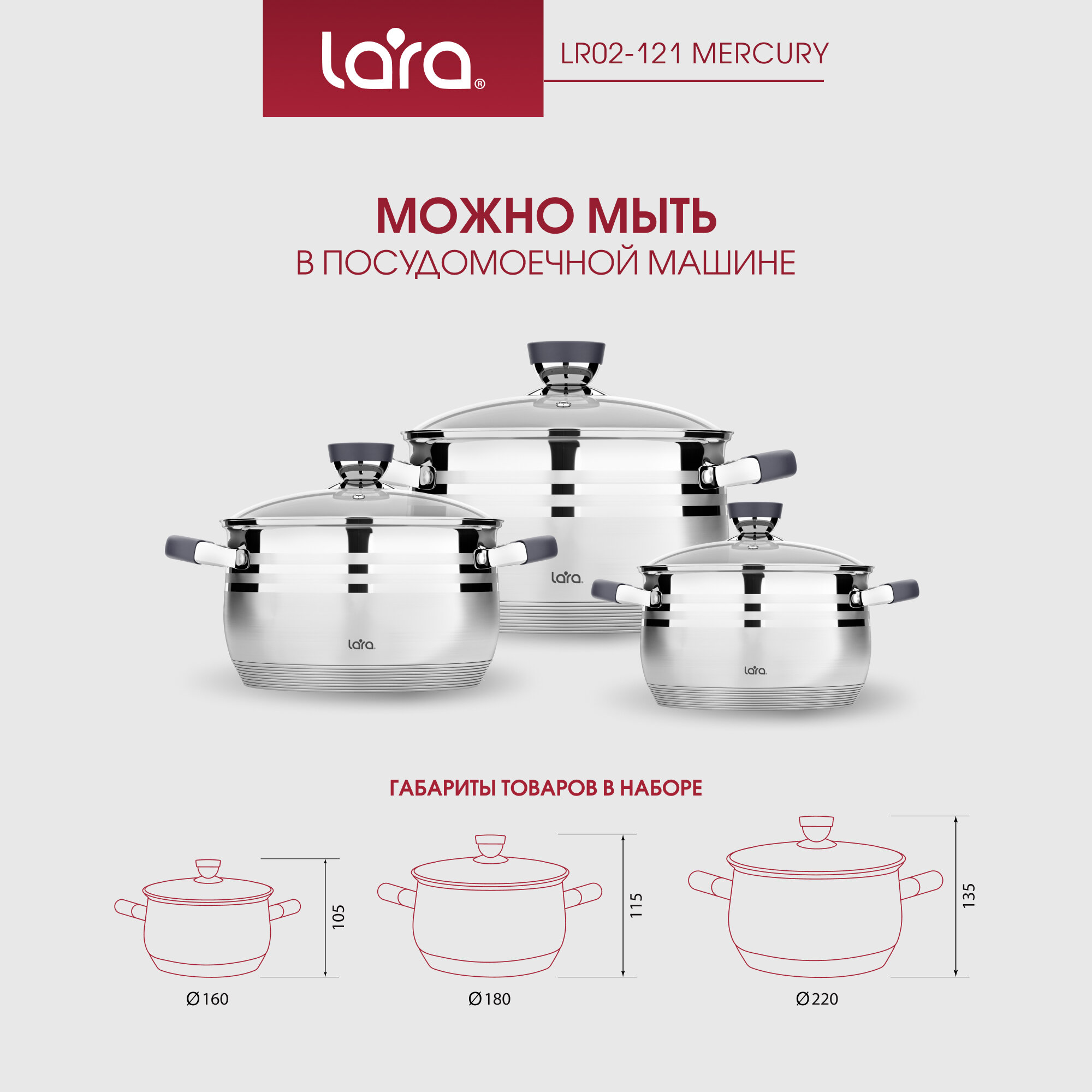 Набор кастрюль Lara LR02-121 Mercury кастрюли 2,1/2,9/4,9