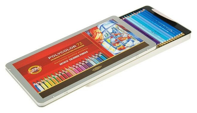 Карандаши цветные художественные KOH-I-NOOR Polycolor, 72 цвета, 3,8 мм, металлическая коробка, 3827072001PL