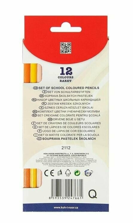 Карандаши цветные Koh-i-Noor 2112 2112012001KS, круглый, дерево, 12 цв., коробка картонная информация: