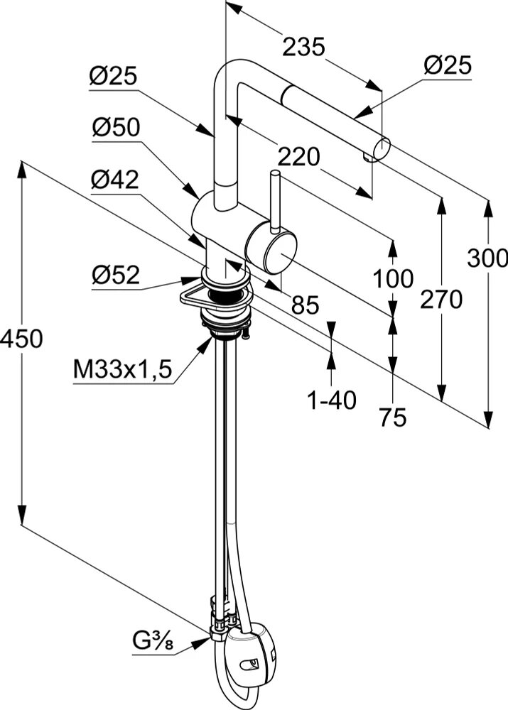 | Длина излива | 220 мм |