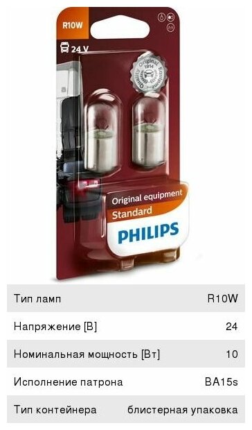 Лампа 24V R10w Ba15s Блистер (2Шт.) Philips Philips арт. 13814B2 информация: