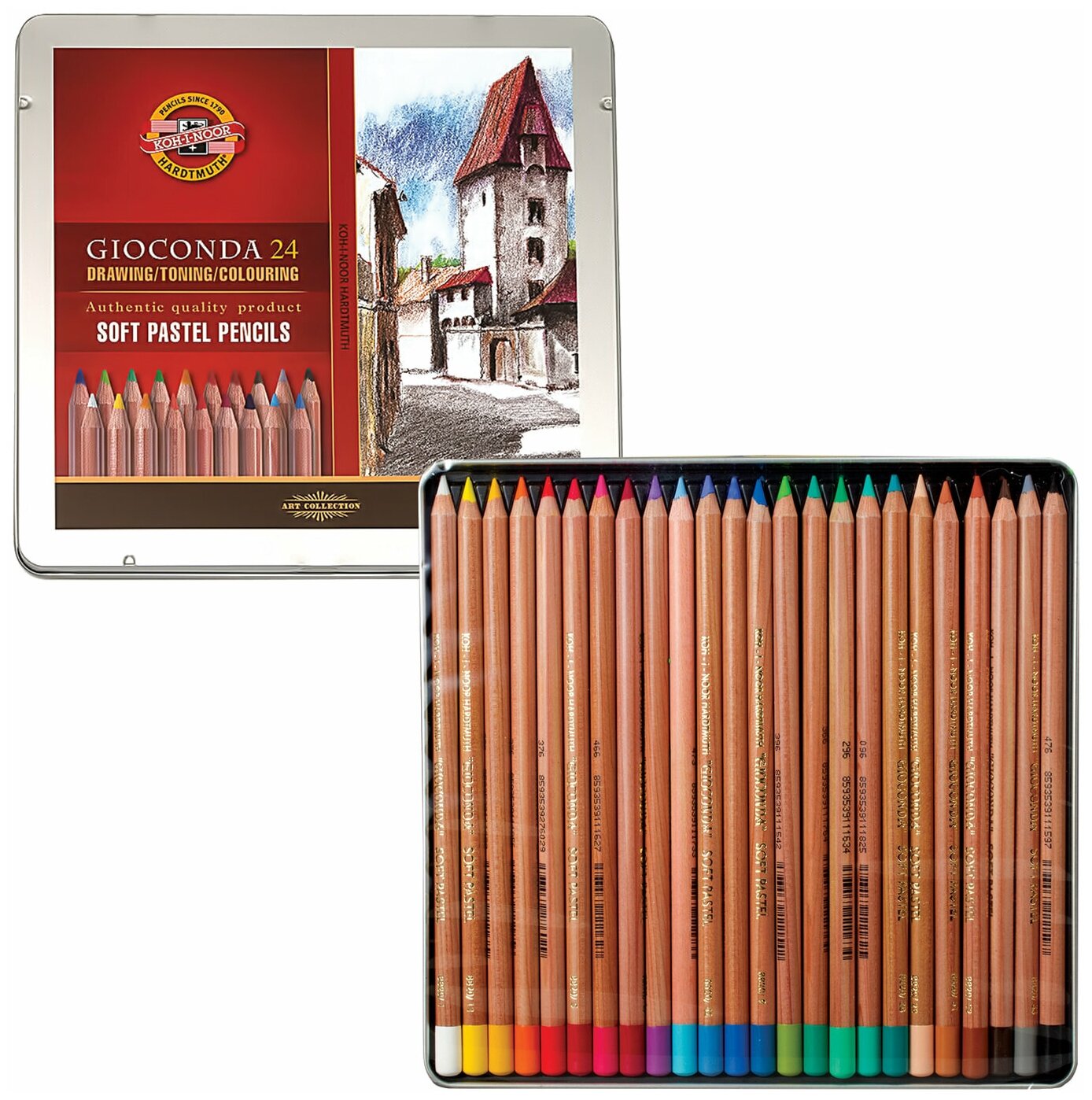 10 цен на Карандаши цветные пастельные KOH-I-NOOR "Gioconda", 24 цвета, мягкие, металлическая коробка, 8828024001PL