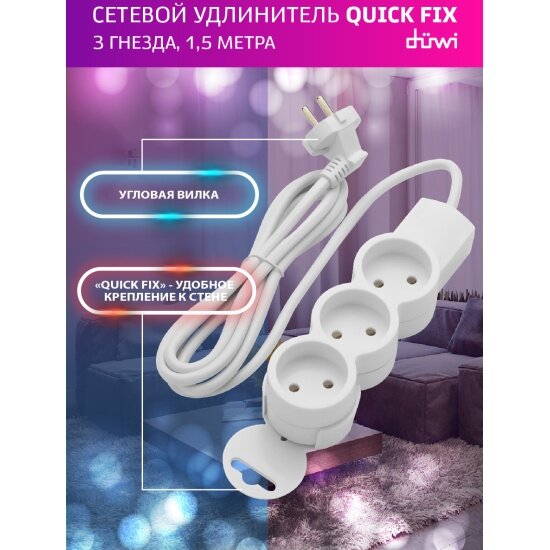 Удлинитель Duwi Quick Fix 32005 2, 3 розетки, с/з, 10А / 2200 Вт