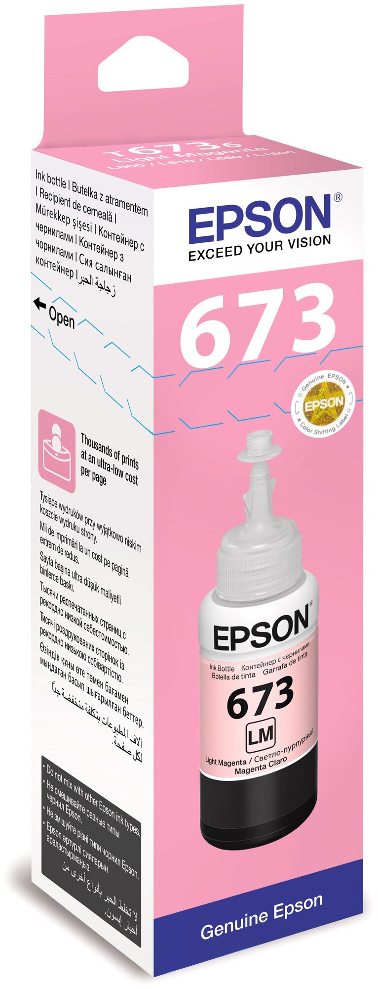 Чернила Epson 673 (C13T67364A/C13T673698), светло-пурпурный, оригинальные для Epson L800/L805/L810/L850/L1800