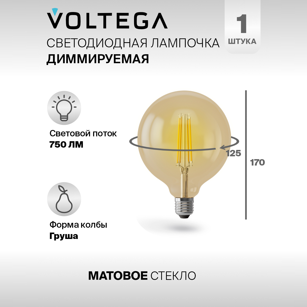 10 цен на VOLTEGA Лампа светодиодная филаментная диммируемая Voltega E27 8W 2800К золотая VG10-G125Gwarm8W 6838