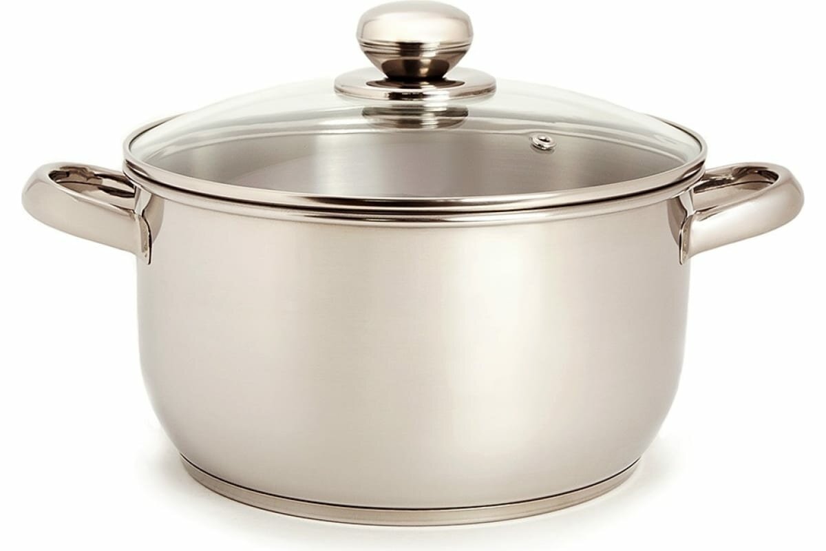 Кастрюля из нержавеющей стали Амет Классика-Прима со стеклянной крышкой и объемными ручками 4л / посуда для газовых и электрических плит