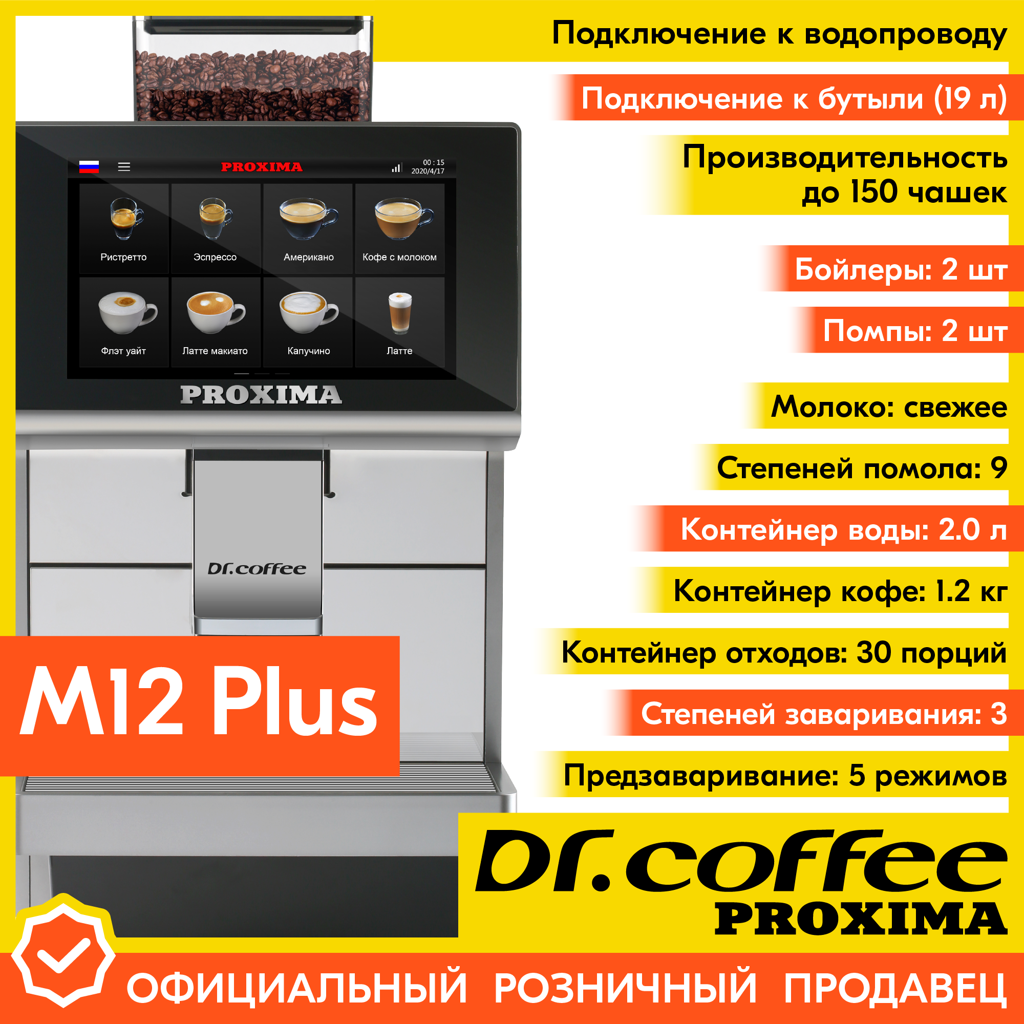 Профессиональная кофемашина Dr.coffee PROXIMA M12 Plus (с подключением к водопроводу) информация: