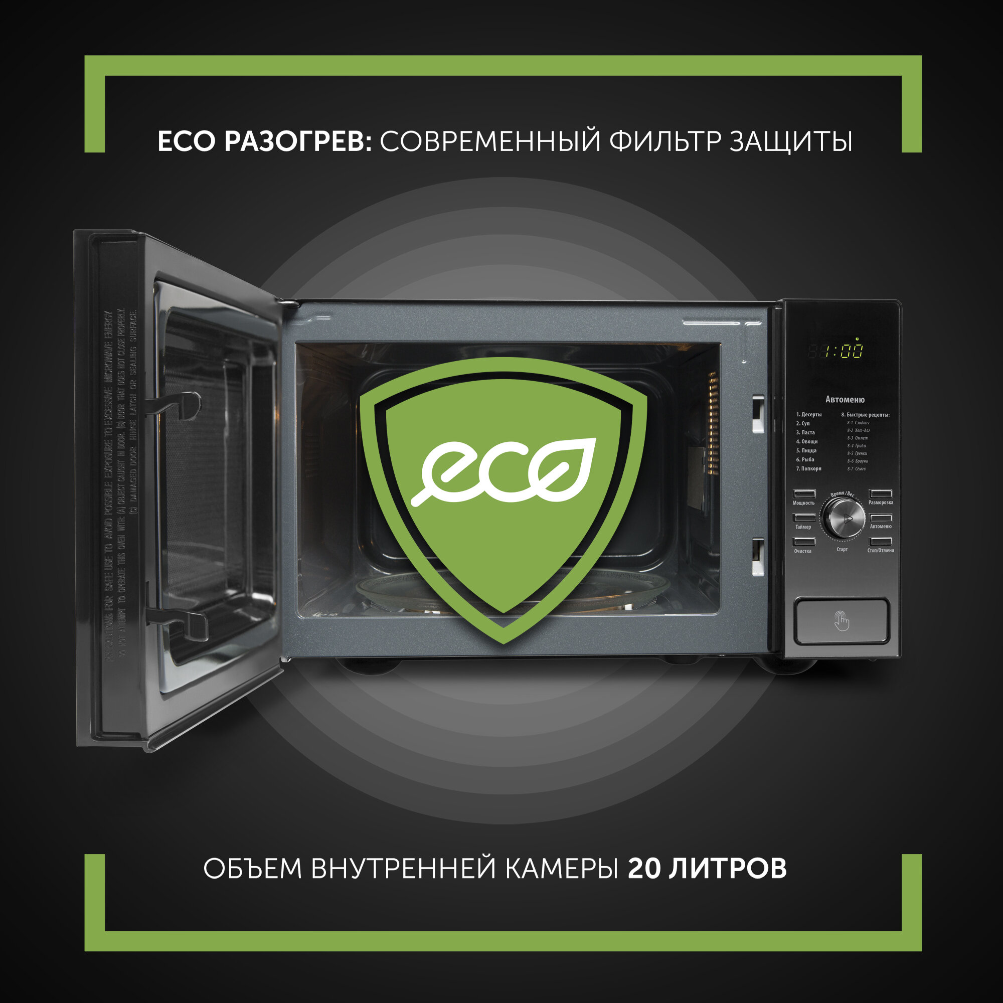 | Дополнительная информация | 3D TurboHeat: система равномерного распределения микроволн и приготовления с 3-х сторон, ECO разогрев: современный фильтр защиты, PRO-3 EASY CARE: инновационное покрытие легкой очистки. |