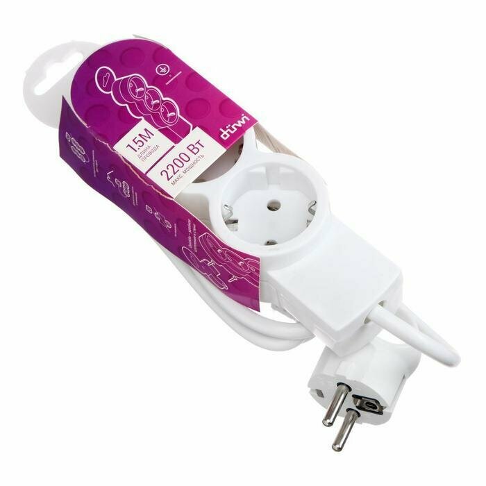 Удлинитель Duwi, 3 розетки, 1.5 м, 10 А, 2200 Вт, ПВС 3х0.75 мм2, с з/к, белый информация: