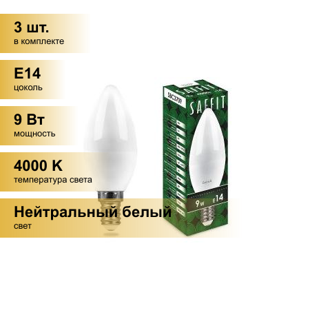 (3 шт.) Светодиодная лампочка Saffit свеча C37 E14 9W(810Lm) 4000K 4K матовая 100x37 SBC3709 55079 информация: