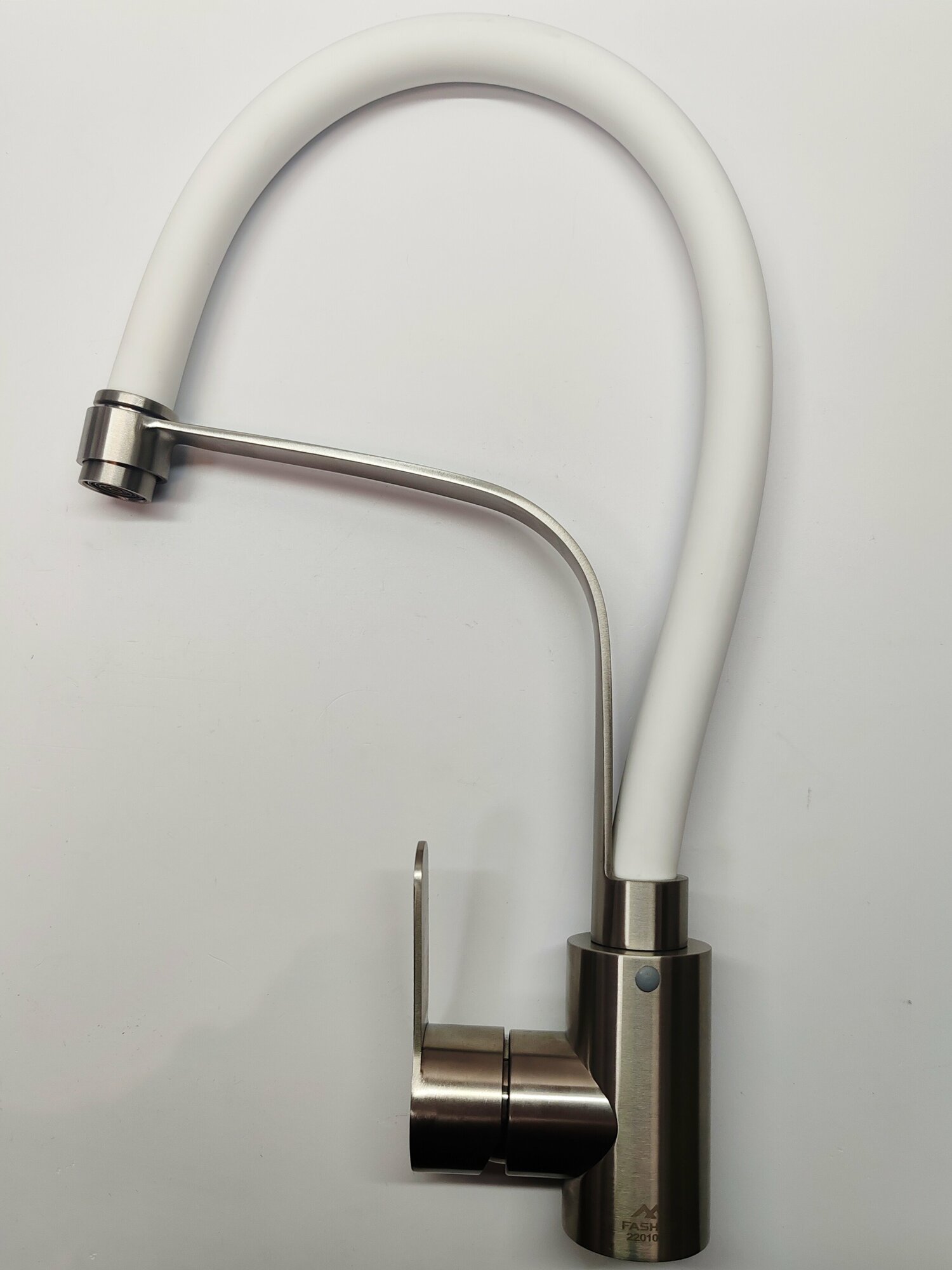 Смеситель FASHUN для кухни из нержавеющей стали с гибким изливом и держателем для излива, белый. A54012-8 информация: