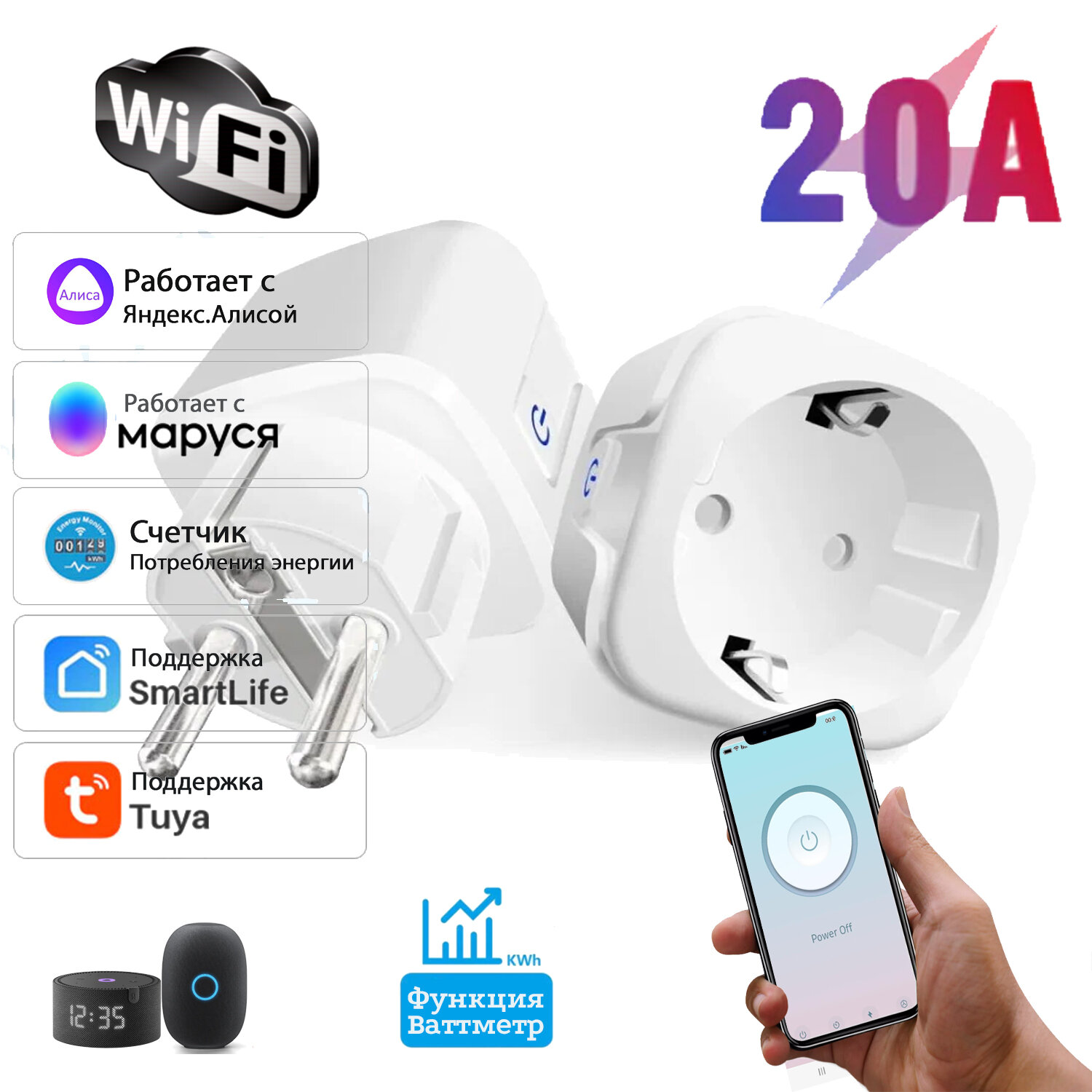 Умная Wi-Fi розетка 20A с Алисой, Марусей для умного дома, Функция ваттметра, Голосовое управление /Таймер на день, отсчета информация:
