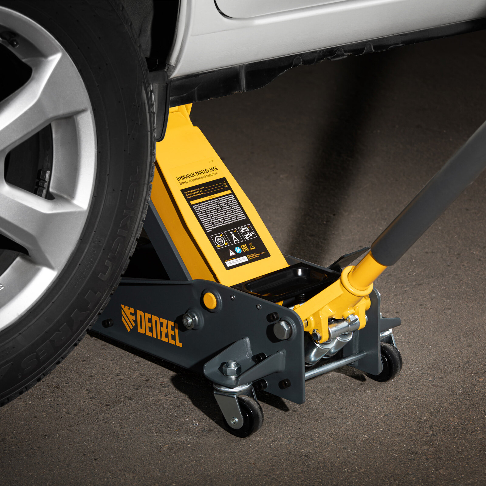 10 цен на Домкрат гидравлический подкатной Denzel 51138, 3 т, с фиксатором, быстрый подъем, 135-480 мм, профессиональный