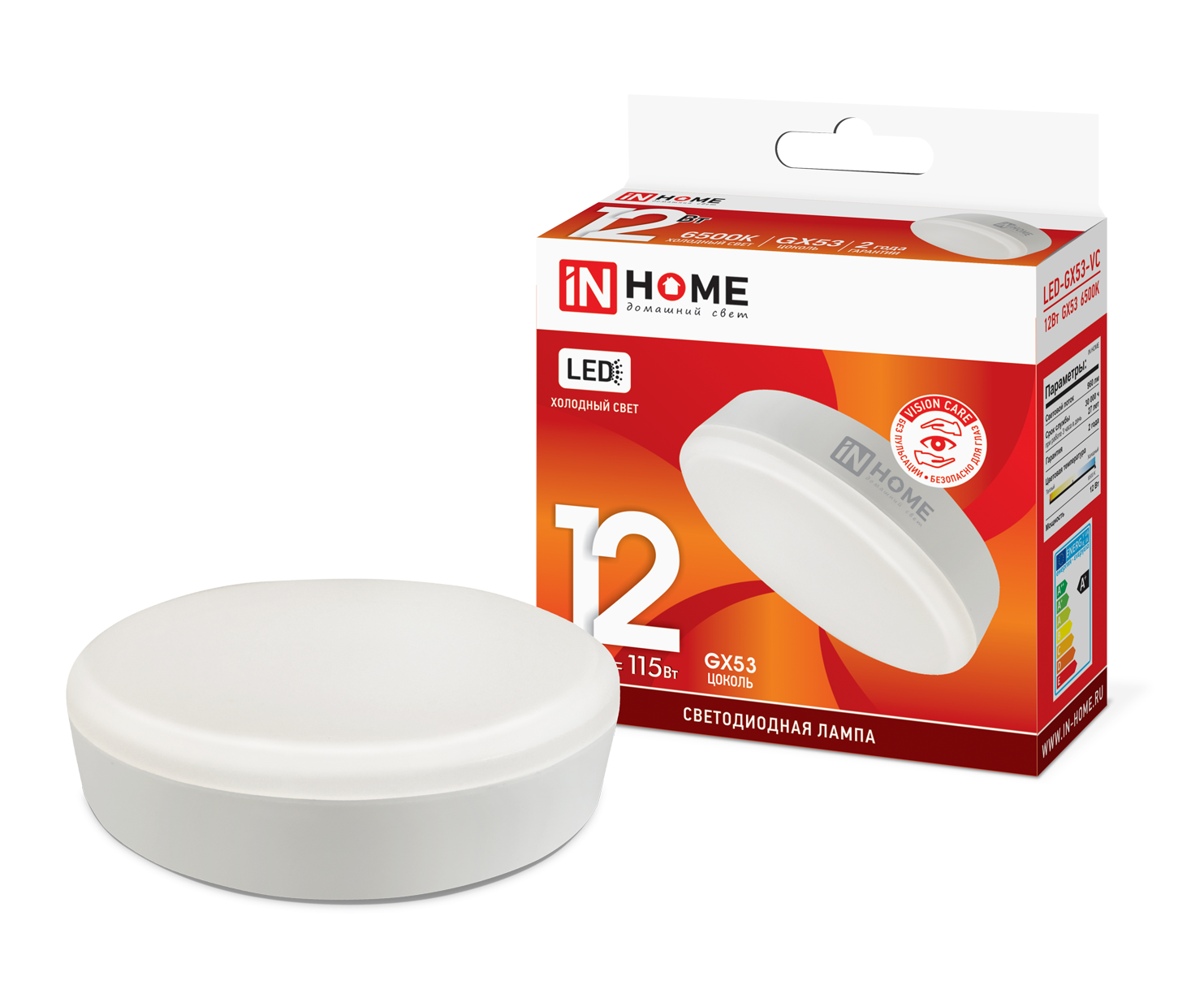 Лампа светодиодная IN HOME LED-GX53-VC, GX53, 12 Вт, 6500 К