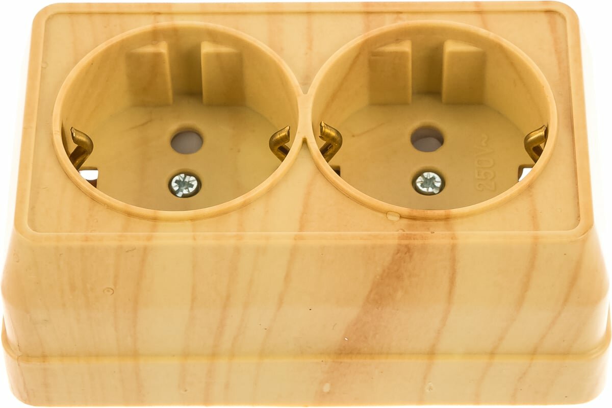 Отзывы на 2-местная розетка с защитными шторками IEK октава РСш22-3-ОС с заземляющим контактом, открытой установки, 16А, сосна ERO24-K03-16-DC
