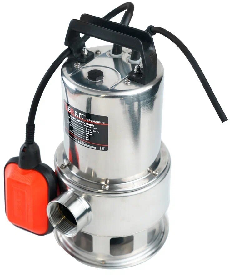 Насос дренажный BRAIT NPD- 550DS грязная вода (550Вт,167л/мин,погр.7м,напор 7м,тв.част.35мм,нерж) 5.9кг информация: