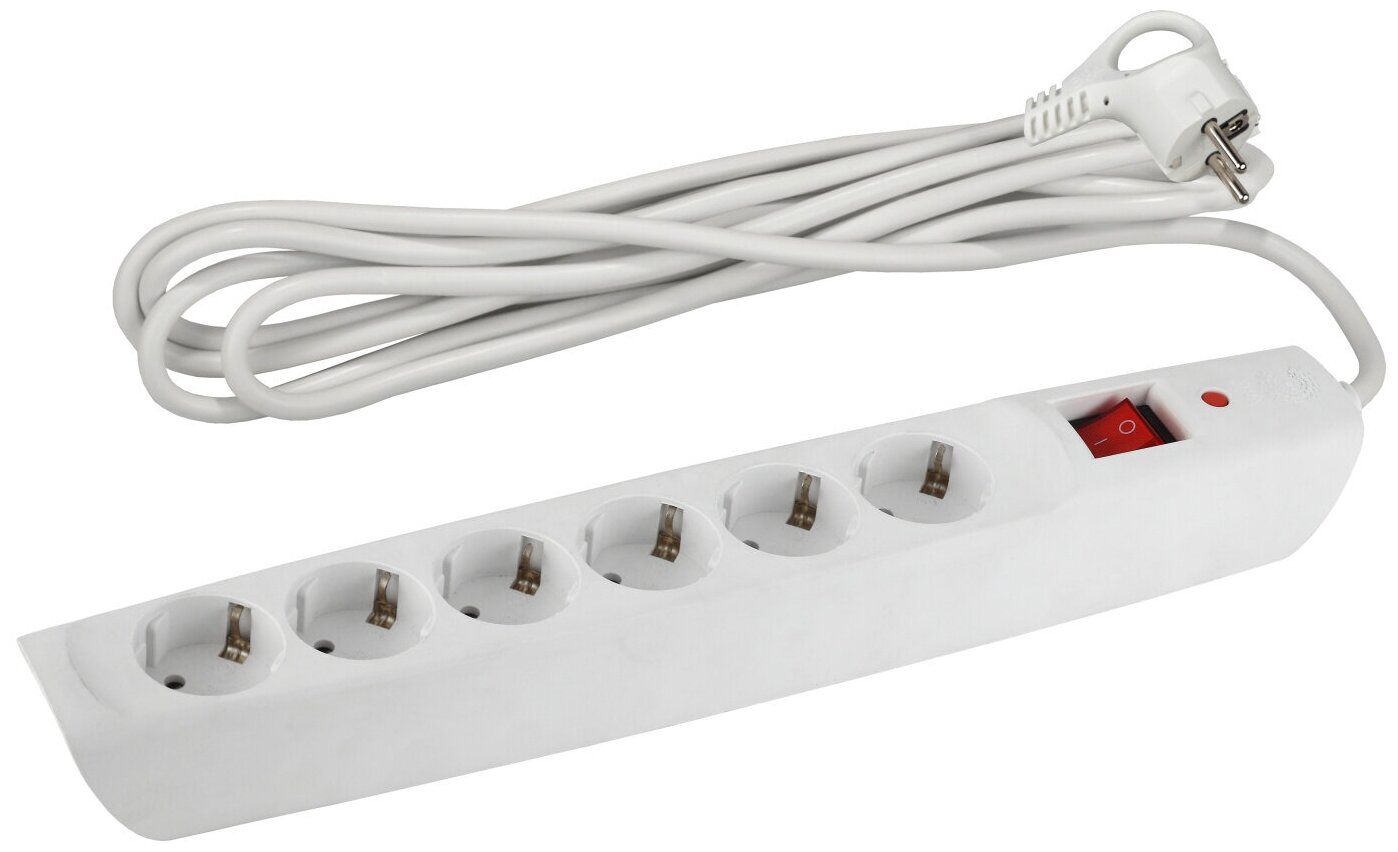 Сетевой фильтр ЭРА SFX-6es-2m-W с заземлением с защитой с выключ 6 розеток 2 м белый