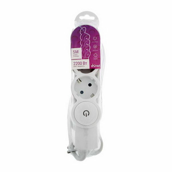 Отзывы на Удлинитель 3 розетки, 5 м, 10 А, 2200 Вт, ПВС 3х0.75 мм2, с з/к, с выключателем, белый