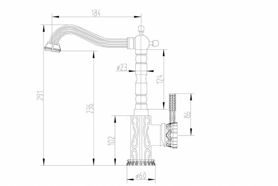 Смеситель на раковину настенный Эверест B46-350 с круглым поворотным изливом, кран-буксы 1/2", хром