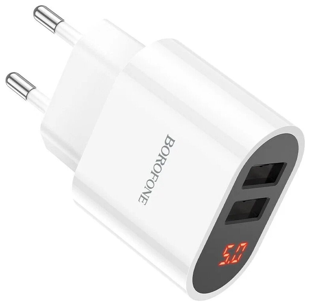 Borofone Сетевое зарядное устройство Borofone BA63A, 2xUSB, 2.4 А, дисплей, белое