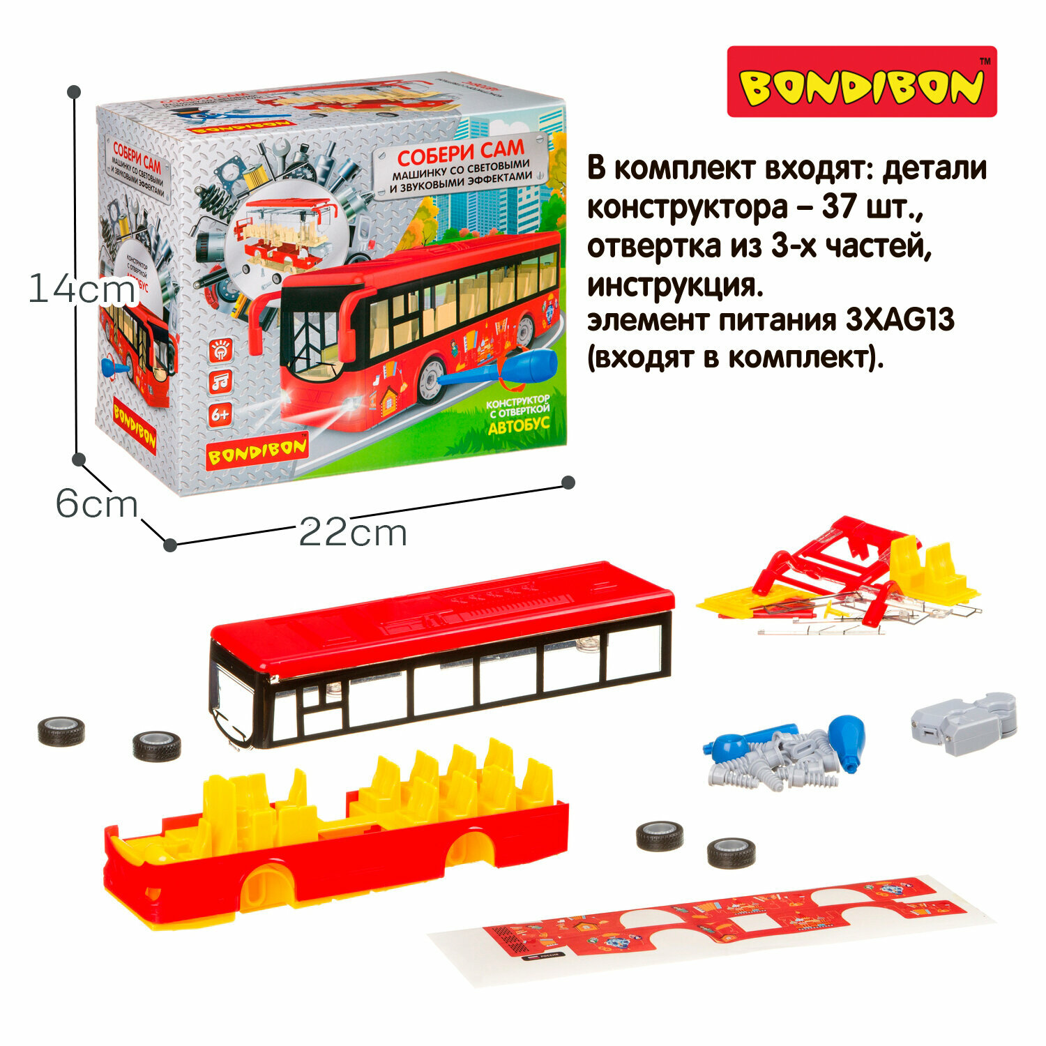 Конструктор с отверкой Bondibon Собирай и играй автобус световые и звуковые эффекты подарок мальчику 6+ информация: