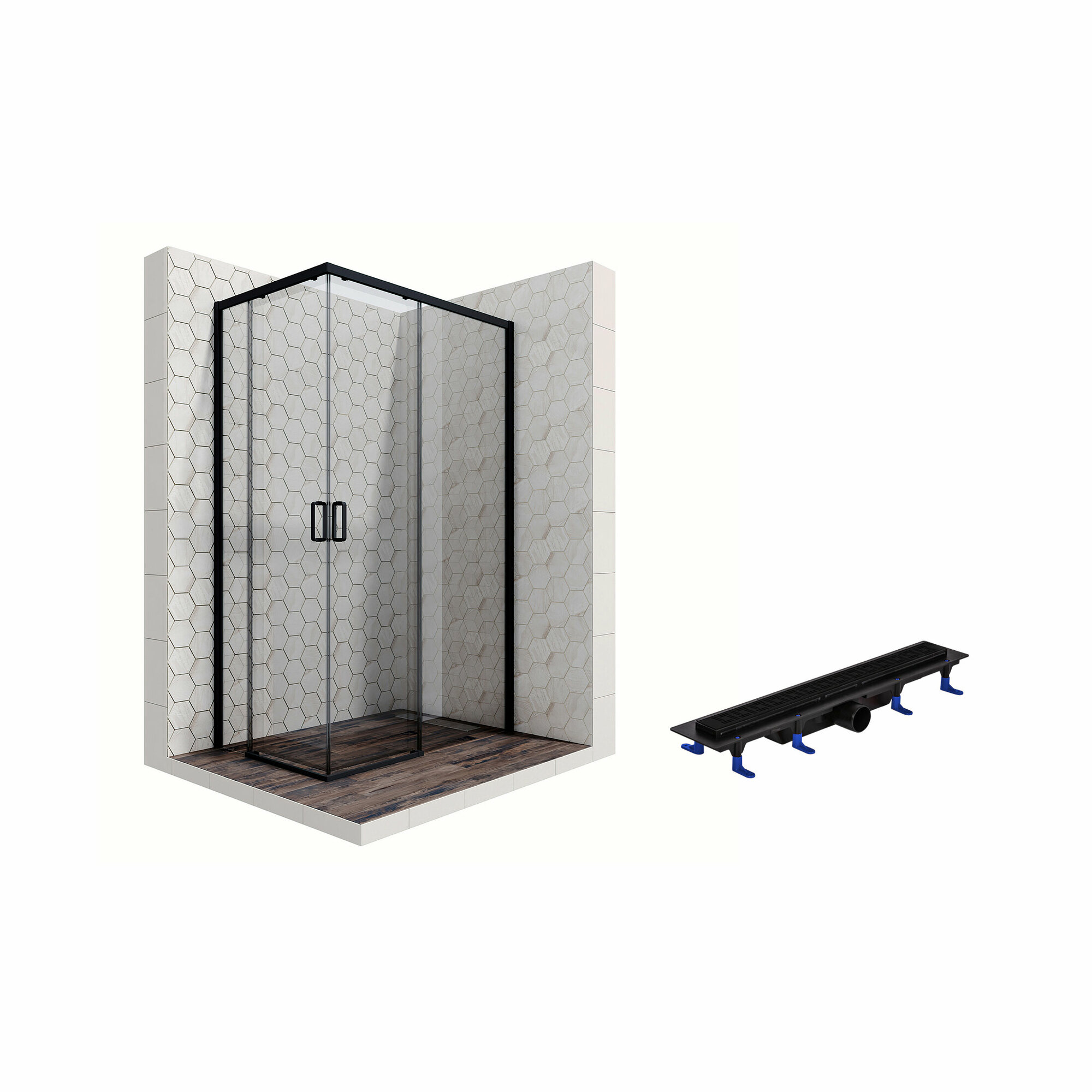 10 цен на Душевой уголок 120х80 с трапом и раздвижными дверями Ambassador Queen Black 11011205R-ST6: правостороннее душевое ограждение 6 мм, профиль черный