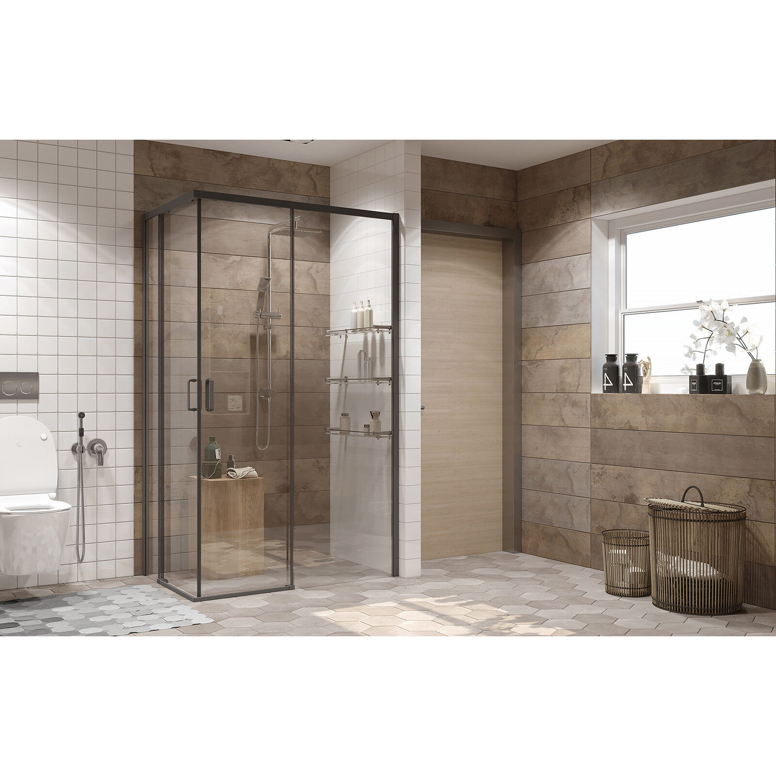 10 цен на Душевой уголок 120х80 с трапом и раздвижными дверями Ambassador Queen Black 11011205R-ST1: правостороннее душевое ограждение 6 мм, профиль черный